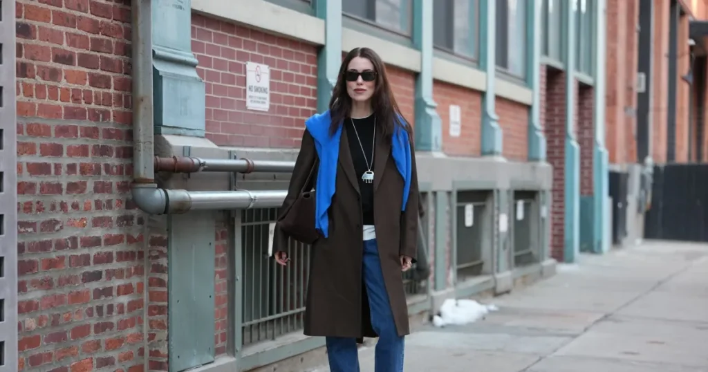 Transitioning to workwear evolution, number six marries wide-legged trousers with denim for “business casual” perfection. Sleek, professional, and unexpectedly comfortable, they scream office infiltration. Brands like J.Crew craft versions that soften corporate edges, perfect for hybrid meetings. I tested one during a Zoom call and felt poised yet relaxed, swapping skirts for good. For daytime ease in number seven, light wash slim-leg styles shine—effortless for afternoons. Pair NYDJ’s Haley with tees and boots, as I did for coffee dates, radiating fresh energy. Number eight dives into browns, or “a taste of chocolate,” where wide-legged ankle jeans in soft hues elevate any fit. The coffee bean shade I tried felt refined, like autumn in denim form—ideal for fall transitional wear. And for uniqueness in number nine, pinstripe boyfriend jeans add fun: silver buttons and patterns make them stand out. Non-traditional, but wearable for layered looks; I recall styling them inspired by indie vibes. These trends blend practicality with personality, ensuring your denim drawer evolves.